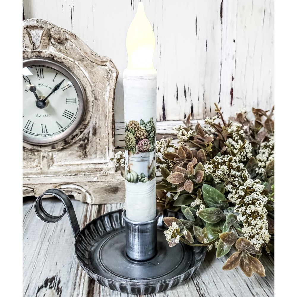 Charm and functionality come together with this lovely unique handmade timer taper candle. This candle features a Farmhouse Watercolor Image...perfect for your home this Autumn, you are sure to fall in love with it. It is approx. 6.5" high to the tip of the "flame".