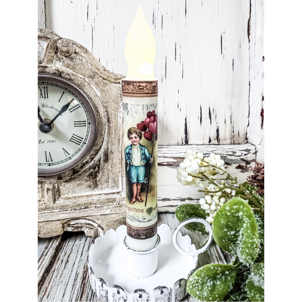 Vintage Postcard Inspired Valentines Boy Handmade Timer Taper Candle