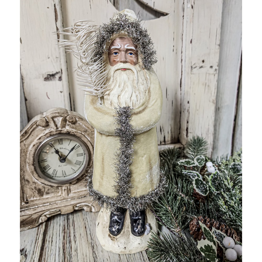 This darling Belsnickel is sure to add Old World charm to your home this Holiday season. He has a beautiful Ivory Velevet coat is approx. 12" tall.