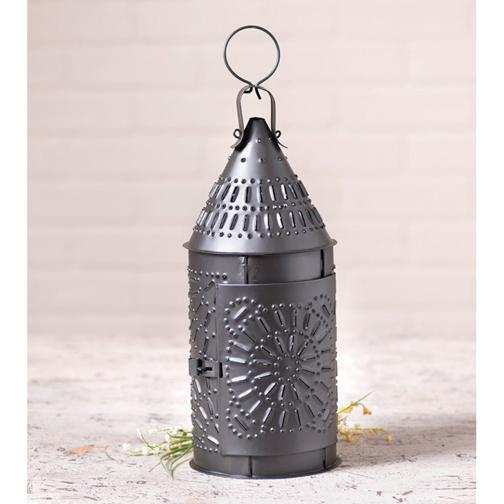 Punched Tin Primitive Candle Lantern - Smokey Black - Farmhouse Candle Holder