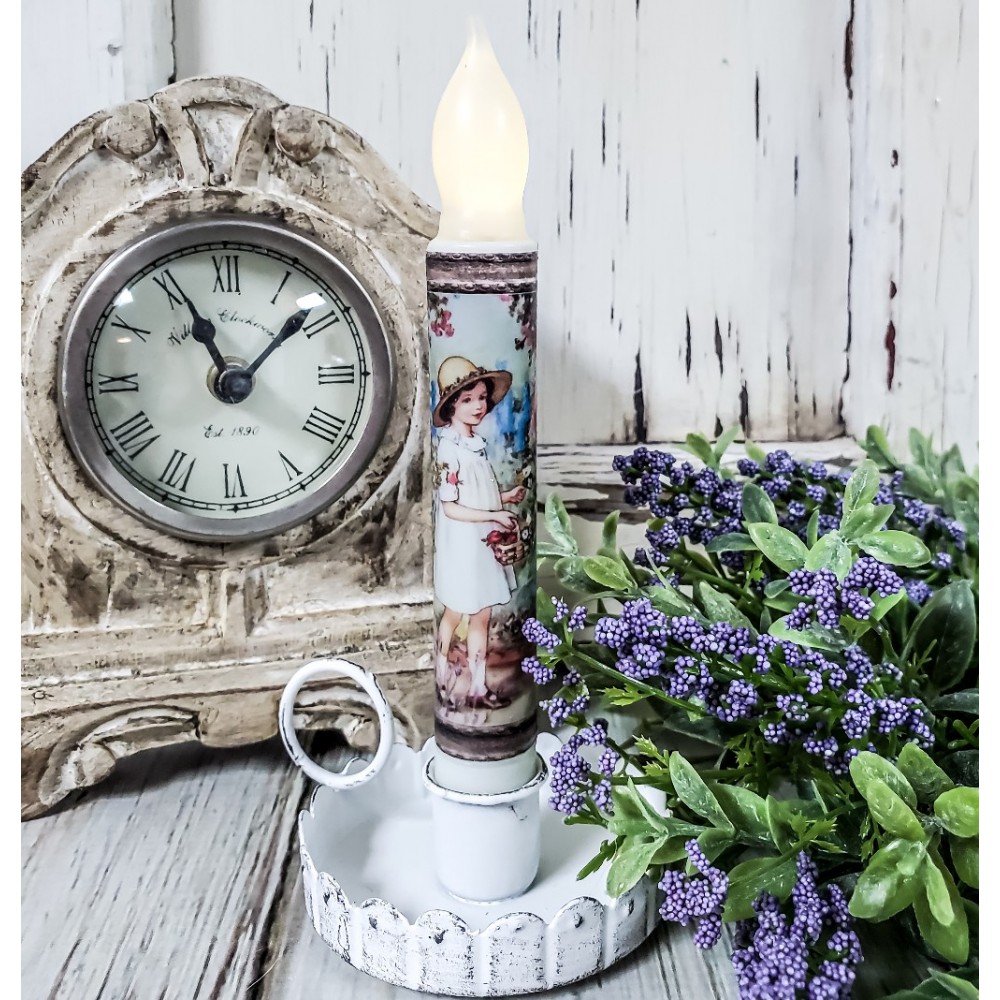 Vintage Inspired Girl in Garden Timer Taper Candle