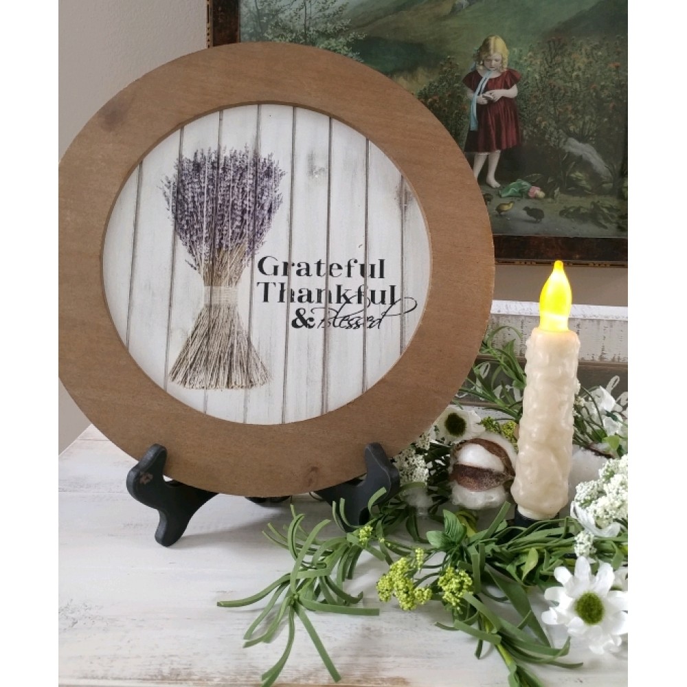 Farmhouse Cottage Grateful Lavender Round Sign