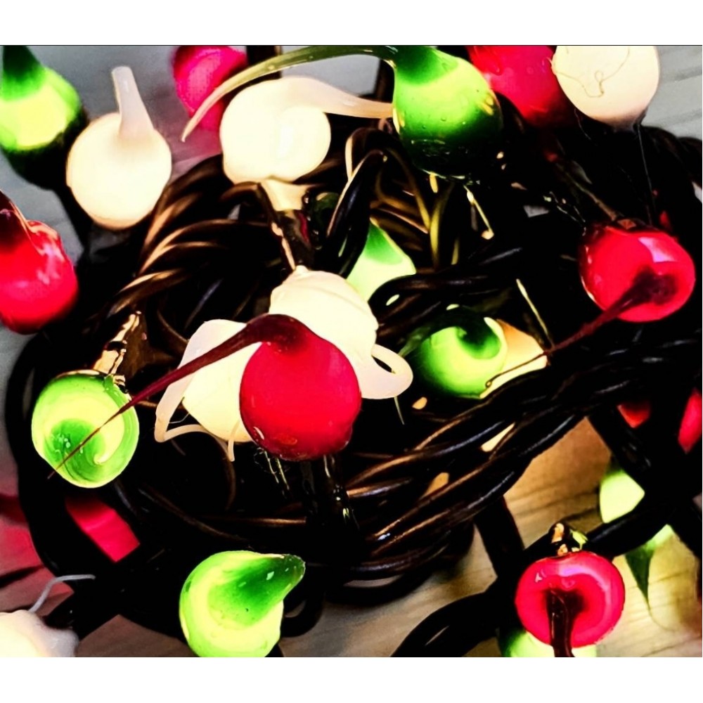 Green Red & Ivory Christmas Hand Dipped String Lights - Light Strand